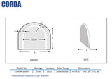 - Corda's half-moon shaped mirror is unique and "mirrored" by a 1.18" thick inset light band illuminated by bright LEDs that follows the contour of the mirror itself.