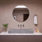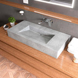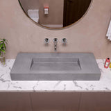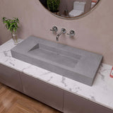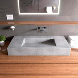 - 40" and 48" Solid Concrete above-mount bathroom vessel sink with unique semi-hidden drain at the rear, for a minimalist look..