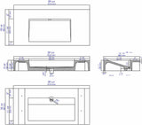 - 40" Sink - Exterior Dimensions: 40" x 18.9" x 5.4 High. Interior Dimensions: 24" x 11.93" x 3.44" High. Minimum cabinet size: 40". Weight: 88.96 lbs. No overflow. No faucet Holes