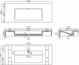 - 48" Sink - Exterior Dimensions: 48" x 18.9" x 5.4 High. Interior Dimensions: 27.87" x 11.93" x 3.44" High. Minimum cabinet size: 48". Weight: 96.01 lbs. No overflow. No faucet Holes