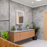 - 24" Compact Concrete Above-Mount Bathroom Vessel Sink with chiseled sides.