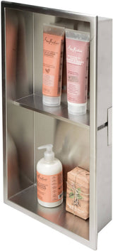 Alfi brand 12" x 24" double-shelf Brushed Stainless Steel Shower/Bathroom Niche