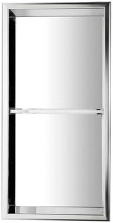This Alfi brand double-shelf Shower Niche measures 12" x 24" x 4" overall - suitable for recessing into a shower wall or a bathroom wall. Or for that matter, any wall. It's a double-shelf niche, and works well as added storage in the shower or in the bathroom, even for tall shampoo bottles. This shower Niche by Alfi brand provides a convenient and neat method of shower storage. Brushed Stainless Steel or Polished Stainless Steel.
