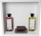 Powder coated Stainless Steel Bath Niches by Alfi brand. They measure 16" x 16" x 4" overall, ready for recessing into a wall whether in the shower or anywhere else. The required cutout is 14.5" wide, so it fits easily between studs. With its 16" height, even some gigantic shampoo bottles with fit - and with some room left over. In the shower, bathroom, or any room, this type of niche affords you added storage and "de-cluttering", to boot. Choose from Matte Black or Matte White.