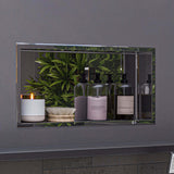 These Shower Niches measure 24" wide x 12" high x 4" deep. They're suitable for use in a completely wet environment - the shower, or they can be used recessed into a a wall in a room, like the bathroom - or any room. At 24" wide, it will be wider than the distance between studs, so keep that in mind. In other words the installation will need to be "boxed out". There's plenty of room in these niches including for tall shampoo bottles. Neat and convenient storage is provided by these niches - in solid Stainless steel, in either brushed or polished finish.