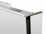 - All three doors are mirrored on both sides and have soft-closing DTC brand hinges. The cabinet itself is high quality aluminum, mirrored inside and out. Four height-adjustable tempered glass shelves are included - 1/4" thick x 3-1/8" deep.