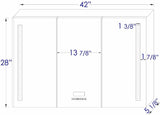 - Surface mount with installation Hardware included. 42" x 28" High x 5.13" Deep. 77.2 lbs. 1-year Manufacturer's Warranty.
