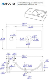 ALFI brand ABCO108 16" Small Rectangular Solid Concrete Wall-Mounted Bathroom Sink