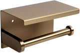 - Stainless Steel Toilet Paper Holder with shelf. in Finishes of Brushed Gold and Brushed Copper