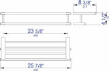 - Dimensions: 25.75" Wide x 8.325" Deep x 4.5" High. Mounting on 23.625" centers.