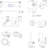 - For complete dimensions of each piece, check the dimensions shown in the dimension image. Note that the Toilet Brush Set and Soap Dish are intended for wall mounting.