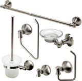 - Alfi brand Universal Styled Bathroom Accessory 6 Piece Set Includes: Towel Bar, Towel Ring, Robe Hook, Soap Dish, Toilet Brush Holder & Toilet Paper Holder.