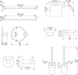 - For complete dimensions of each piece, check the dimensions shown in the dimension image. Note that the Toilet Brush Set and Soap Dish are intended for wall mounting.