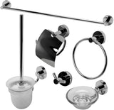 - Alfi brand Modern Motif Bathroom Accessory 6 Piece Set Includes: Towel Bar, Towel Ring, Robe Hook, Soap Dish, Toilet Brush Holder & Toilet Paper Holder.
