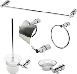Alfi brand's bathroom accessory set includes everything you need to upgrade your bathroom decor including a Towel Bar, Towel Ring, Robe Hook, Soap Dish, Toilet Brush Holder, and Toilet Paper Holder. Save time and money when you do away with searching for individual bathroom accessories. Every piece in the set is designed to render a clean look without visible screws as the mounting hardware is concealed. Both elegance and durability are combined in this set. Your choice of Polished Chrome or Brushed Nickel finishes.