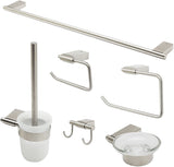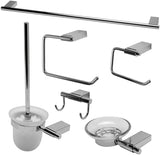 - Alfi brand Universal Styled Bathroom Accessory 6 Piece Set Includes: Towel Bar, Towel Ring, Robe Hook, Soap Dish, Toilet Brush Holder & Toilet Paper Holder.