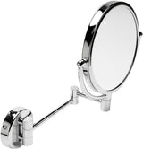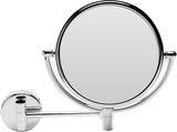 Tilt and Swivel: Every wall mounted mirror we carry both tilts and swivels. Swivel is usually 360° or close to it. Tilt is usually 15° up or down - sometimes more. A double-arm wall-mounted mirror has more capability than a single-arm mirror because in addition to rotating at the mirror pivot, you can also rotate through 360° or almost, at the elbow.