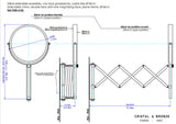 Custom made and hand-crafted in Chatau-Landon, France, Cristal&Bronze's extension mirror is a work of art for your bathroom. Besides it's beautiful appearance, it has useful specification. It extends out to 15" on a pantograph, and collapses back to 2.8". Additionally, you can swing the collapsed assembly almost dead flat against the wall. The mirror section reverses from 3x to 1x (no) magnification, and the mirrors are both sides are made from superior quality glass and backed with pure silver. The pantograph itself is superior quality and doesn't sag and won't become "loose" with use. The mirror rotates horizontally 360 degrees and the height adjusts approximately 4" vertically, while the entire assembly swings through 180 degrees. Choice of 34 finishes in 2 frame styles - smooth or "pearl".