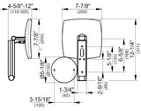 - Mirror dimensions: 7-7/8" x 7-7/8" square. Mounting plate: 7-1/8" x 1-3/4". The mirror folded back protrudes 4-5/8" from the wall and the maximum extension is 12". The Control Panel has a diameter of 5-1/8".