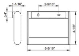 - Overall dimensions: 5-5/16" Wide x 4-1/8" High. Mounting on 2-9/16" centers is hidden, and corrosion-free mounting hardware is supplied.