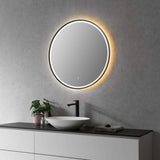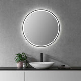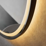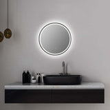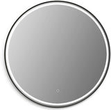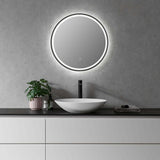 - The Palme 24" or 32" Diameter Gloss Black Framed LED Bathroom Vanity Mirror has a built-in defogger keeping the mirror fog-free even after a steamy hot shower.