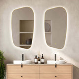 People will remark about Altair's strikingly unconventional Florian LED Mirror. It combines contemporary artistry with significant modern technology. Unlike traditional design, the Florian makes a bold statement lending panache and intrigue to your decor. The mirror is shatter-proof mirror with customizable touch-sensor LED lights you can instantly change from 3,000k, to 4,000k to 6,000k - and there's also a dimmer on touch sensor. You can create a soothing atmospheric mood or set the stage for flawless makeup application. Cutting-edge anti-fog and memory functions bring everyday practicality into the mix. Choose Matte Black or Brushed Gold framing.