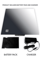 No electrical wiring for the ClearMirror Clarity Li Ion heated fogless Shower Mirror. The Clarity installs easily and can be periodically removed for cleaning. Using 3M Dual Lock™ technology, the Clarity mounts to any smooth surface and requires no remodeling or electrical connections. It is powered by a Lithium Ion battery pack that removes for recharging. On average, 10 cycles are run before recharging is necessary. The 1/8" glass mirror is 12" x 12" and has a 10" x 10" fog-free area. The Clarity is shipped fully assembled with the battery pack, and charger included.