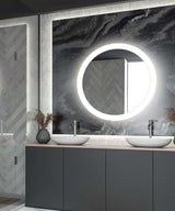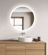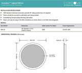 Cordova's Grandeur LED Vanity Mirror at 30" round provides forward-facing task lighting and luxurious ambient wall-glow lighting. A finished side view is accomplished through the diffuser surrounding the mirror, through which the LED lighting emanates The Grandeur is made with lead-free, copper-free corrosion resistant PrimMirror glass and is suitable for damp environments such as bathrooms. Using a forward-phase wall-switch/dimmer (by others) the LEDs are dimmable. LEDs are rated at 50,000 hours - or 30 years of daily 2-hour operation. 3,690 Lumens, 40 Watts. The CRI (color rendering index) is 90+ which means you get high-resolution natural colors.
