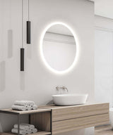 - Lead-free copper-free corrosion-resisant PrimMirror glass with 2 inch precision frosted LED vertical band running around the circumference.
