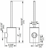 The Keuco Reva Toilet Brush Set is complete with a matte glass insert, detachable synthetic insert, brush with handle and a spare brush head. This is a wall-mounted set - 16-5/16" high overall, with a 4-3/8" projection from the wall. A Keuco toilet brush set pampers your senses and captivates you with its flawless finish, and careful German craftsmanship.