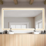 With large widths of 60", 72" and 84", front and rear LED lighting with touch sensors for dimming and LED color temperature adjustment to suit your mood, Altair's Apollo series fits the bill.. LEDs can be switched from 3,000k indoor lighting, to 4,000k office environment, or 6,000k, bright white sunlight. The glass of the mirror is surrounded by an acrylic "lamp shade" diffusing the light for intensity and softness. A touch sensor on the face of the mirror uses long-press for dimming and quick press for on/off functions. The glass is 5mm copper-free silver coated for corrosion resistance and a bright, clear image. Memory function retains the last settings when you turn the mirror off. An independent anti-fog control means you never need to deal with a steamy, fogged mirror. Matte Black or Brushed Gold frame, to match your decor.