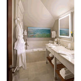 A surround of brilliant LED lighting frames this bathroom mirror - Integrity by Electric mirror. The LED lighting is a natural 3,000 degrees Kelvin, providing plenty of light. Front-facing task lighting is augmented by rear-facing wall glow. The long-lasting LEDs are estimated to have a 52,000 hour lifespan - which is almost 48 years of 3-hour daily operation! And in the unlikely event an LED should ever fail, it's replaceable. The LEDs emit 100 Lumens per watt and 869 Lumens per foot (see below), and they're dimmable with a forward-phase dimmer. The Color Rendering Index (CRI) is 90+ giving you true-to-life natural looking views. Complete easy installation instructions are included. The mirror glass is DuraMirror™ that stands up more than 14x better to corrosion. The mirror is also ADA compliant, UL listed in the USA and Canada and comes with a 7-year manufacturer's limited warranty.