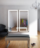Super clean is the look for the Electric Mirror Integrity frameless wardrobe mirror. Frameless, with an inset frosted strip which emanates bright LED lighting, it's a fully functional, full-length wardrobe mirror at 60" length x 26" wide. Forward-facing LED extra bright LED illumination emanates from a 1-1/2" wide frosted section running around the mirror 1-1/2" inside the perimeter.
