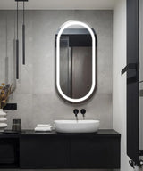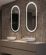 Electric Mirror's Saratoga LED bathroom mirror is uniquely shaped - as if it were an oval with straight sides. The basic rectangle is altered to contain a circular top and circular bottom. The LED Color Rendering Index is at 90+, and is at 3,000k, matching indoor lighting. With optional AVA technology, color is adjustable to 3,00k, 4,600k, and 6,500k, color-matching your anticipated environment so you always look perfect. 7-year limited warranty.
