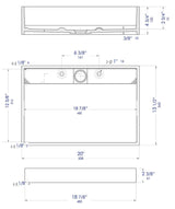 - Exterior Dimensions: Outer: 20" x 13.5". Height:4.75". Interior dimensions: 18.9" x 12.4" . Depth: 2.8". Minimum cabinet size: 20". Weight: 16.09 lbs. NO OVERFLOW.