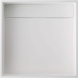 - ALFI brand 14" Square Resin Above-Mount Bathroom Sink featuring a concealed drain which is covered by a plate made of the same material as the sink. Matte Black/Matte White. Upgrade your bathroom with this sleek modern round sink made of solid surface composite.