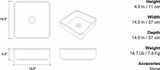 - Exterior Dimensions: 14.5" x 14.5" x 4.3" High. 16.7 lbs.