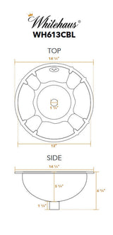 - 14.5" Round, smooth drop-in. Inside bowl diameter 12" x 5.75" deep.