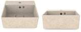 • Woodio Cube40 Above-Mount Bathroom Sinks are 80% Wood, beautiful, and the size is ideal for smaller spaces. The sink is tapped for a single-hold faucet, and has an overflow port. Easy to care for. Quick to install.