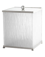 - The square tissue box is 12.2" x 6.3". Dimensions of the covered (smaller) bin are 8.27" x 8.27" x 10.24" high including the ball feet. The larger, uncovered bin (not shown) is 10.24" x 10.24" x 11.8" high including the ball feet.