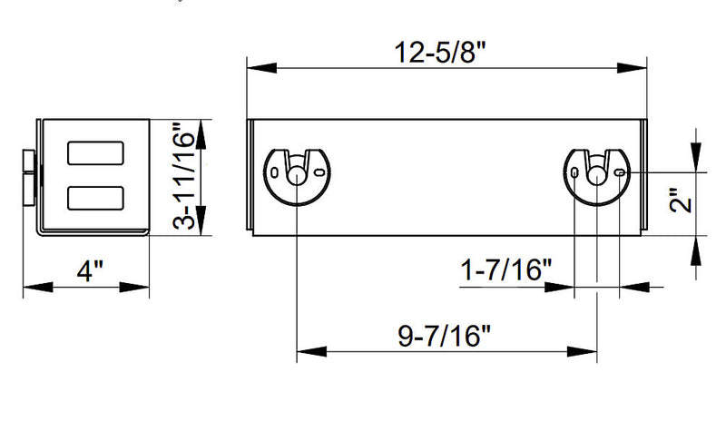 - Overall dimensions: 12-5/8" Wide x 3-11/19" High x 3-3/4" Projection. Mounting is hidden.