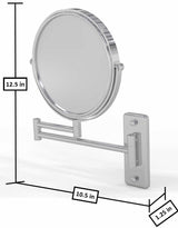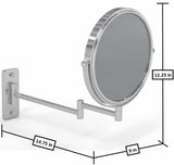 - Viewing area: 7" Diameter. Frame Dia: 7.87" x 1.125" Deep. Mounting Plate: 5" H x 2" W x 1.13"D. Maximum extension from the wall: 14". Wall Space, Retracted: 11.25" Wide x 12.75" High x 1.5" Deep. Mirror center is offsent 6.25" from mounting plate center.