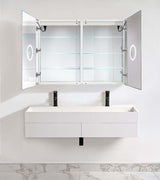 - Krugg "Svange" Mirrored Center-Open Double Door Medicine Cabinet with LED lighting on both doors and integrated sensor touch controls with memory.