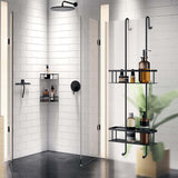 Matte Black hanging double Shower Basket by Smedbo is 30" tall x 9.8" wide. Plenty of room for tall bottles.