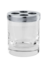 All Cristallin "cisele" (chiseled) tumbler and toothbrush glass by Cristal&Bronze of France are fabricated in crystal-clear crystal and available in 27 different metal finishes. The term "cisele" refers to the chiseled work in the metal trim sections. Cristal&Bronze of France, maker of the finest in bathroom and boudoir accessories hand-fabricates each piece in the Cristallin Series in Chateau-Landon, near Paris, France. Finishes are impeccable and make for outstanding bathroom or boudoir pieces. They're custom made for you in one of 27 metal finishes and shipped in about 7 weeks. Some sooner.