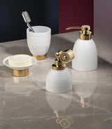 Serdaneli and J.L. Coquet has released a new line of bath accessories through Cristal&Bronze of France - the Hemisphere collection. Since 1975, Serdanelil has been making bath hardware by drawing on France's finest craftsmanship. Now combined with J.L Coquet, the maker of fine Limoges Porcelain since 1824, a unique and beautiful collection of bath accessories has been created in the Hemisphere collection. The collection features finely engraved Limoges Porcelain striations adorned with white satiny enamel. Metal accents can be had in any of 34 finishes, according to your choice. Each dispenser is custom made and shipped directly to you from Saint-Leonard-de-Noblat, France, in about 30 days. Some of the more exotic finishes require take up to six weeks for fabrication. Shipping is free, and there are no import duties or taxes.