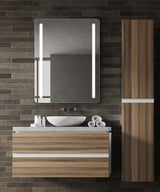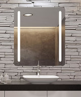 Electric Mirror's Bela LED bathroom mirror is brightly front-lit via slim rounded-end frosted strips at both sides; and those are within a rounded corner mirror using OmegaMirror corrosion-resistant glass. LED front-facing illumination is at 3,000k with a CRI of 90+. Optionally available with AVA technology, color-matching your anticipated environment, so you always look perfect. 7-year limited warranty.