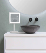 - Kimball & Young Cordless Rechargeable LED free-standing square vanity mirror is LED illuminated at 3x magnification.