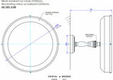 Almost 10" in diameter Cristal&Bronze makeup mirrors are ustom made and hand-crafted in Chatau-Landon, France. Taltnted craftsmen create each piece individually to create a flawless work of art. There's a plain (smooth finish) frame, or a "pearl" frame for your selection, as well as 34 finishes. The mirror itself is are made from superior quality glass and backed with pure silver, with a magnification power of 3x. Actual diameter is 9.8" overall and protrusion from the wall is only 4.1". Illumination is via a 25 Watt replaceable light bulb.