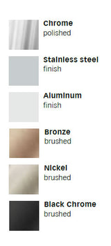 - Finishes include Matte Black, Polished Chrome, Brushed Bronze, Brushed Nickel, Stainless Steel Finish, Brushed Black Chrome, or Aluminum Finish.